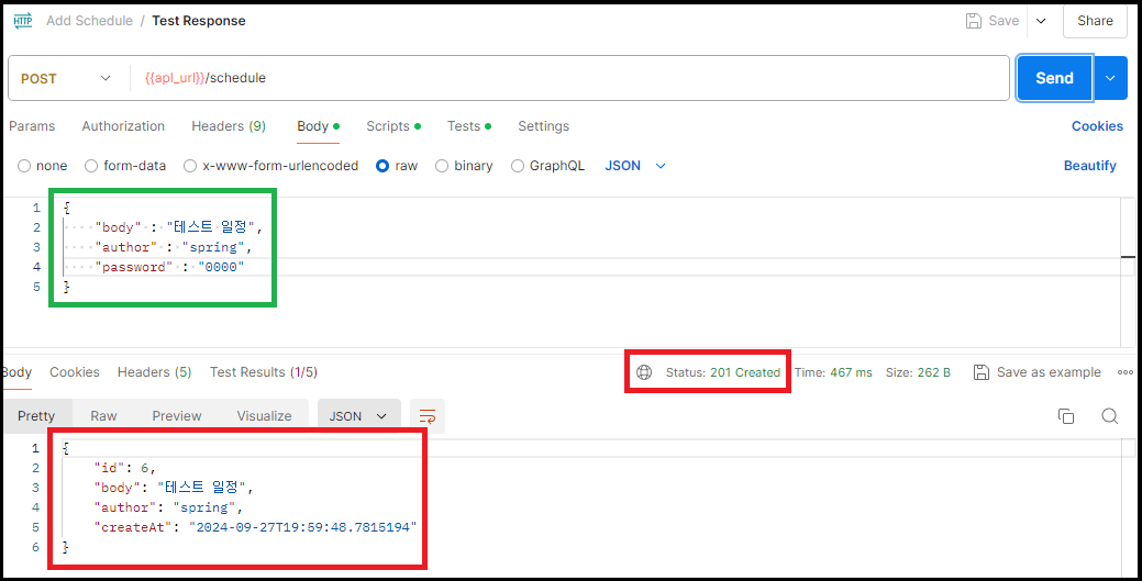 2. 일정 생성 API 테스트