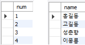 예제에 사용한 NUMS, NAMES 테이블은 아래의 이미지와 같다.