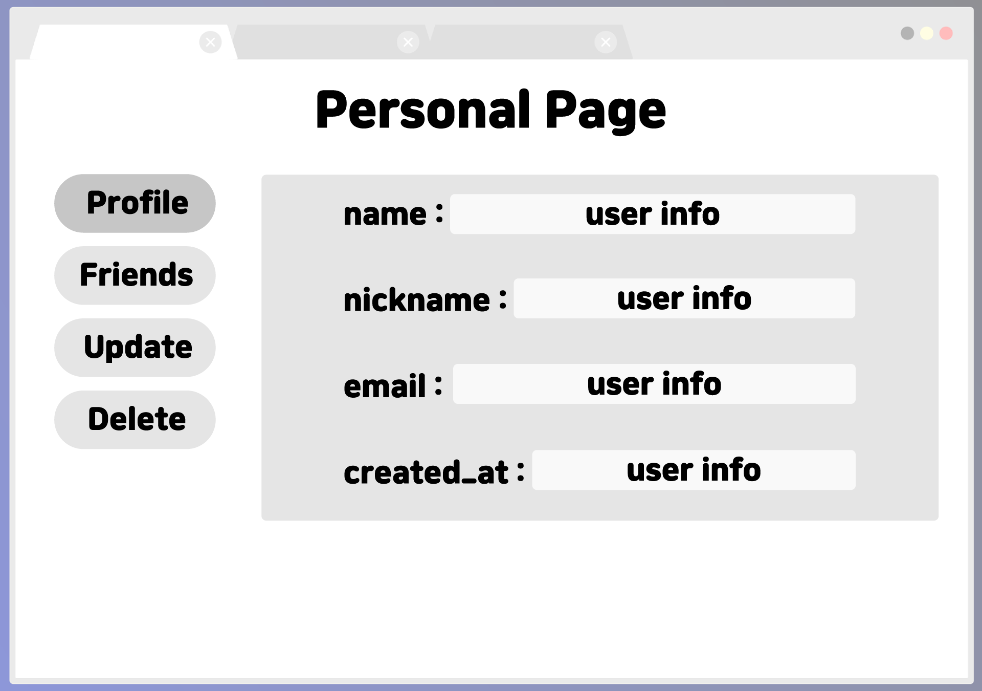 급하게 작성한 터라 조잡하긴 했지만 팀원들에게 필요성을 느낀 이유를 담아 이야기했더니 고맙게도 팀원들 또한 와이어 프레임이 필요한 것에 동의했고 가장 연관성이 깊은 파트별로 모여 와이어 프레임에 대한 구상을 시작했다. 나의 경우 '회원' 을 맡았기에 '인증/인가, 친구' 파트를 맡은 팀원들과 회의 끝에 아래와 같은 와이어 프레임을 구상할 수 있었다.