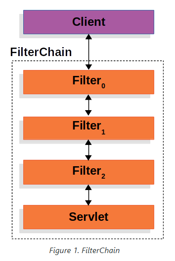 Spring Security’s Servlet support is based on Servlet Filters, so it is helpful to look at the role of Filters generally first. The following image shows the typical layering of the handlers for a single HTTP request.